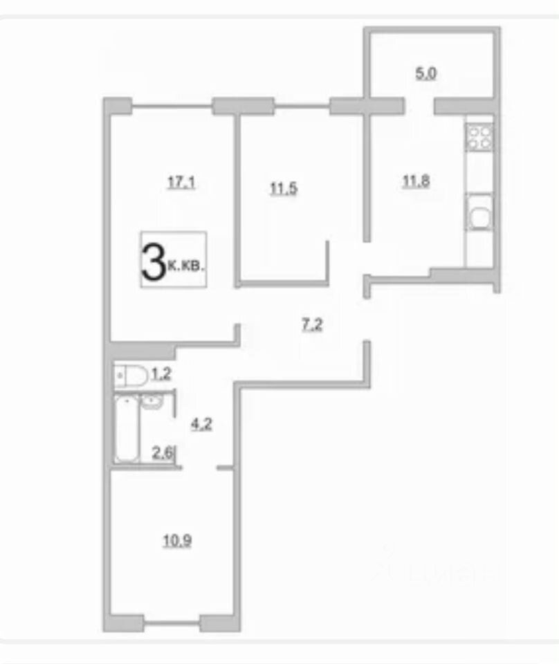 Продается трехкомнатная квартира в ЖК Сиреневый парк.