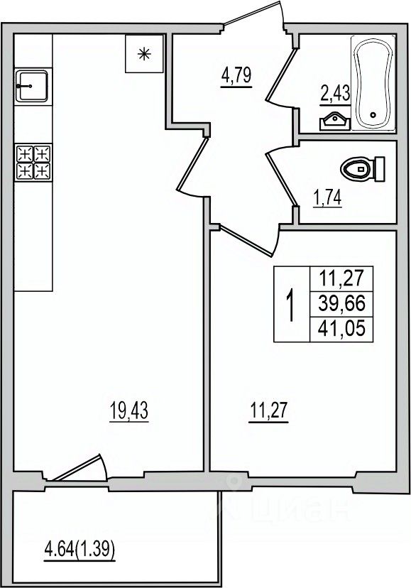 продам 1-к, Рижский проспект, 94г3 912 750 ₽