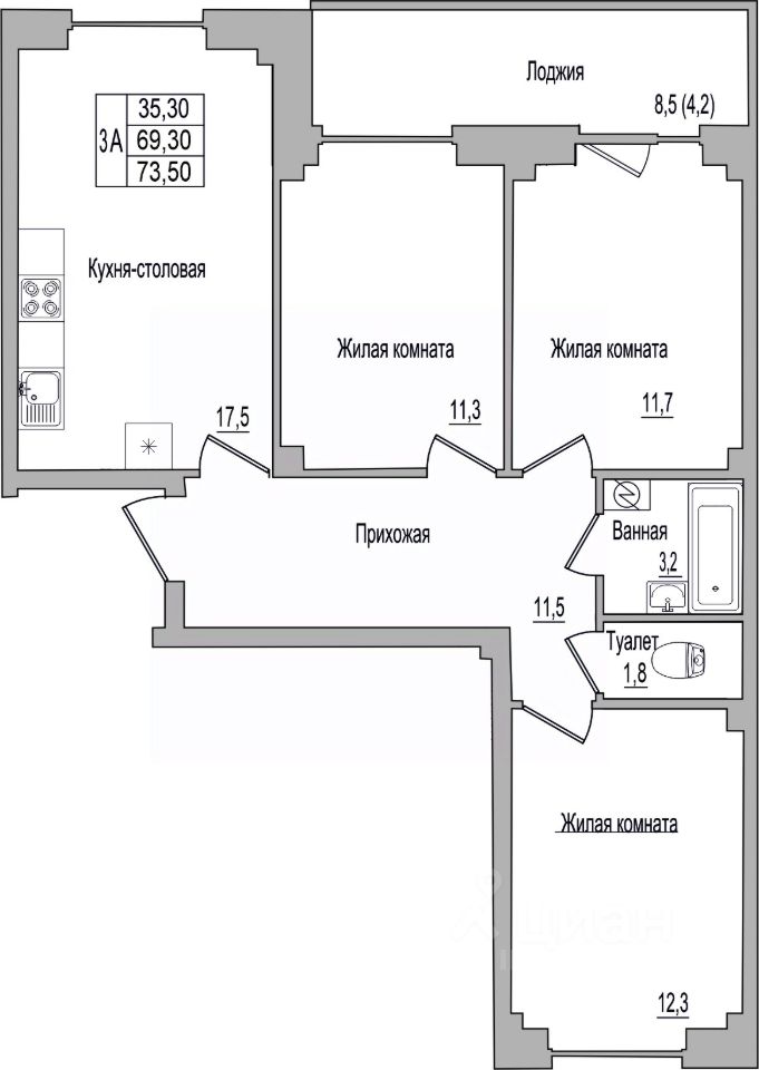 Продаётся 3-комнатная квартира в строящемся доме (Дом 4), срок сдачи: I-кв. 2026, общей площадью 73.5 кв.м., на 1 этаже. Новый жилой комплекс ''Семейный'' от застройщика ''Группа комапний ''ЛУГ'' расположен по адресу Псковский район, деревня Борисовичи, улица Героя России Досягаева.