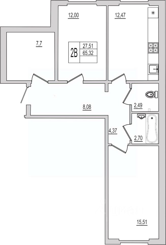 Продаётся 2-комнатная квартира в строящемся доме (Дом 1), срок сдачи: IV-кв. 2026, общей площадью 65.32 кв.м., на 1 этаже. Новый жилой комплекс ''Семь сезонов'' от застройщика ''ЛУГ''