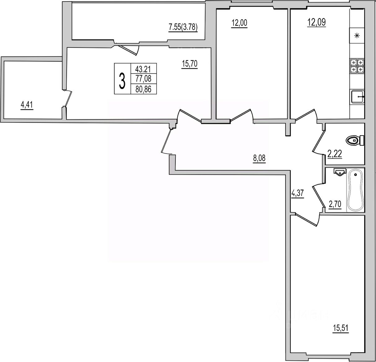 Продаётся 3-комнатная квартира в строящемся доме (Дом 1), срок сдачи: IV-кв. 2026, общей площадью 80.86 кв.м., на 8 этаже. Новый жилой комплекс ''Семь сезонов'' от застройщика ''ЛУГ''
