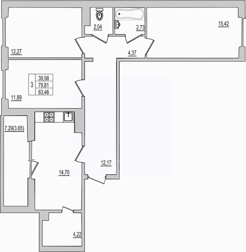 Продаётся 3-комнатная квартира в строящемся доме (Дом 94Д), срок сдачи: III-кв. 2027, общей площадью 83.46 кв.м., на 9 этаже. Новый жилой комплекс ''Семь сезонов'' от застройщика ''ЛУГ''