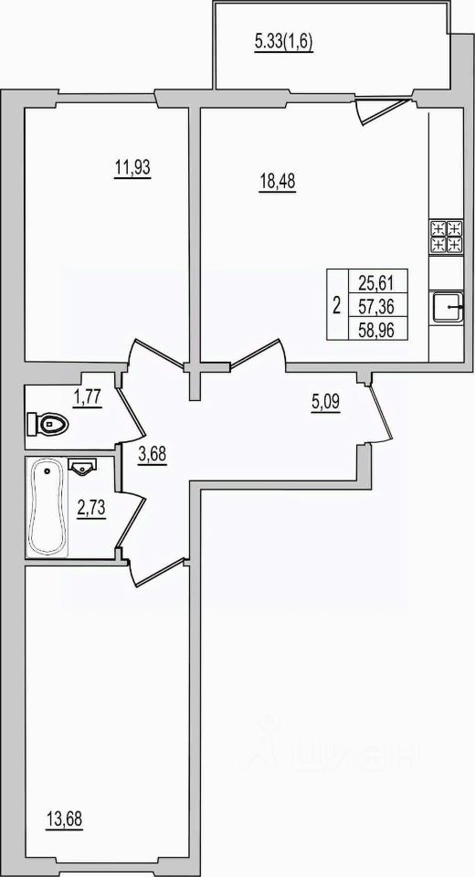 продам 2-к, Рижский проспект, 94д5 614 200 ₽