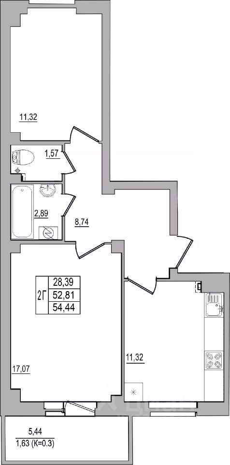 Продаётся 2-комнатная квартира в строящемся доме (Дом 32 (2 этап)), срок сдачи: III-кв. 2026, общей площадью 54.44 кв.м., на 10 этаже. Строительство многоквартирных жилых домов на улице Юности.