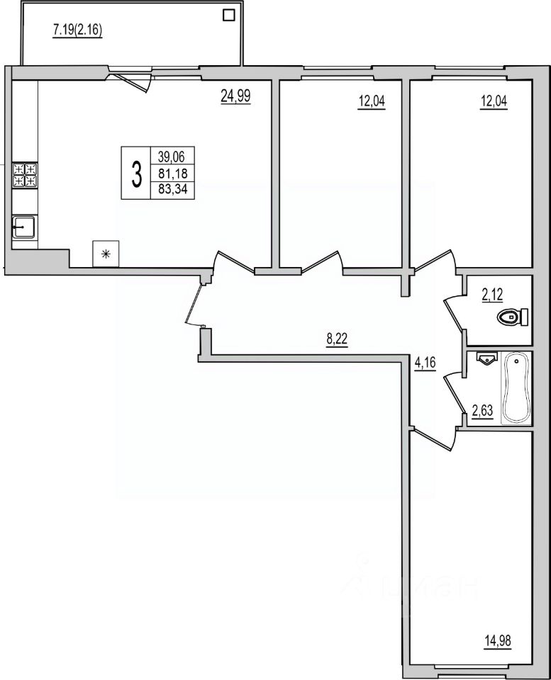 Продаётся 3-комнатная квартира в строящемся доме (Дом 1), срок сдачи: IV-кв. 2026, общей площадью 83.34 кв.м., на 5 этаже. Новый жилой комплекс ''Семь сезонов'' от застройщика ''ЛУГ''