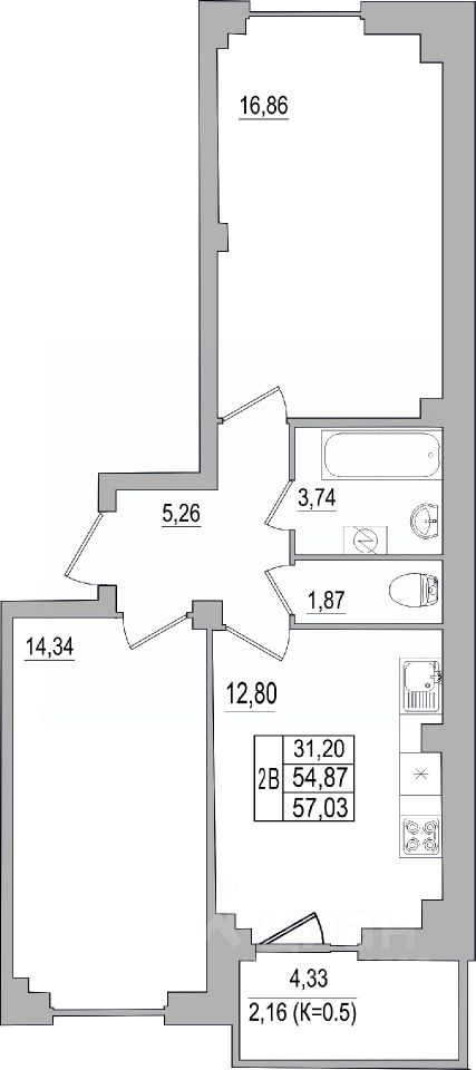 Продаётся 2-комнатная квартира в строящемся доме (Дом 32 (2 этап)), срок сдачи: III-кв. 2026, общей площадью 57.03 кв.м., на 7 этаже. Строительство многоквартирных жилых домов на улице Юности.