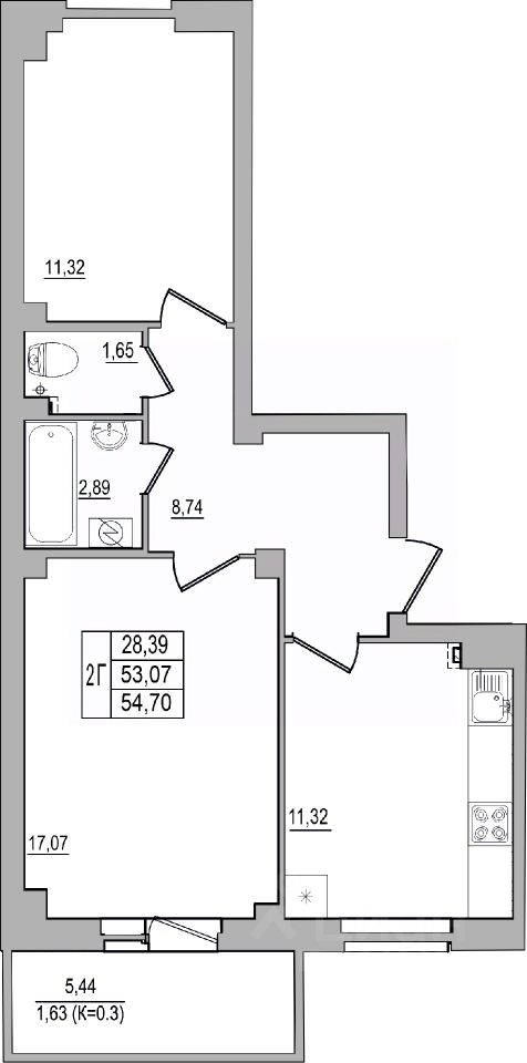 Продаётся 2-комнатная квартира в строящемся доме (Дом 32 (2 этап)), срок сдачи: III-кв. 2026, общей площадью 54.7 кв.м., на 7 этаже. Строительство многоквартирных жилых домов на улице Юности.