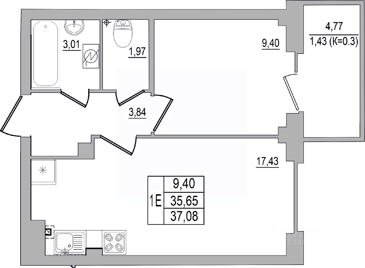 Продаётся 1-комнатная квартира в строящемся доме (Дом 32 (2 этап)), срок сдачи: III-кв. 2026, общей площадью 37.08 кв.м., на 1 этаже. Строительство многоквартирных жилых домов на улице Юности.
