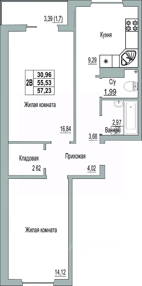 Общая площадь57,23 м2