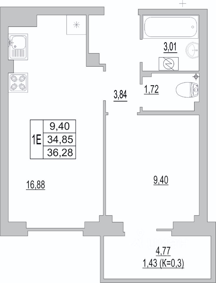 Общая площадь36,28 м2