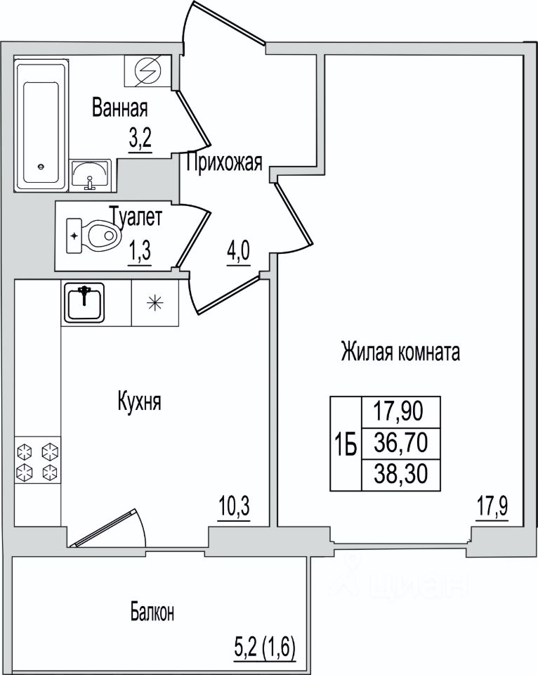 1. Умная планировка - удобная кухня, просторная комната и место для хранения.