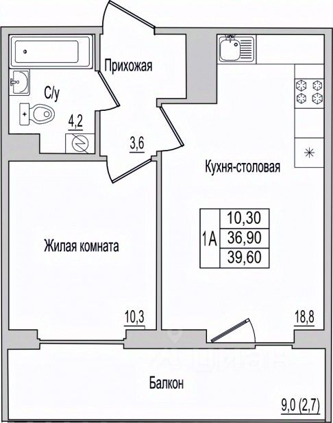1. Умная планировка - удобная кухня, просторная комната и место для хранения.
