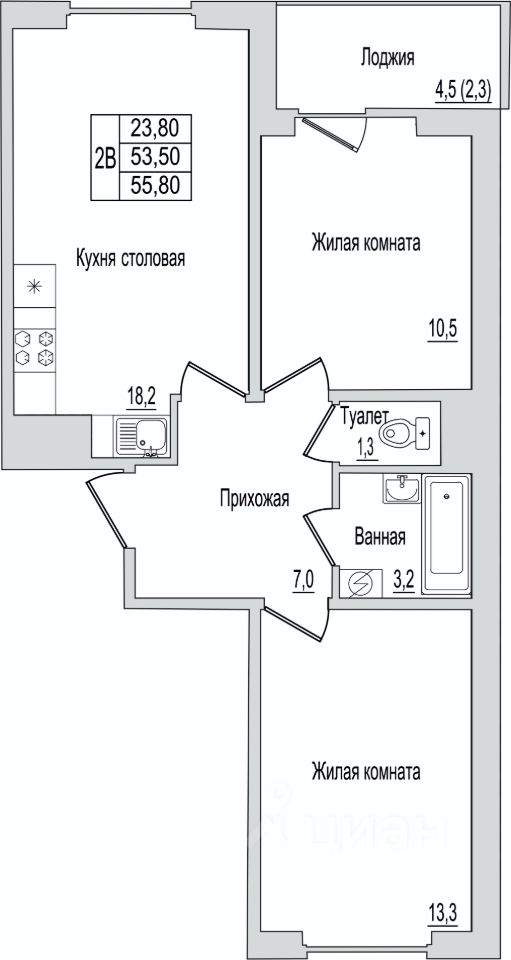 1. Умная планировка - удобная кухня, просторная комната и место для хранения.