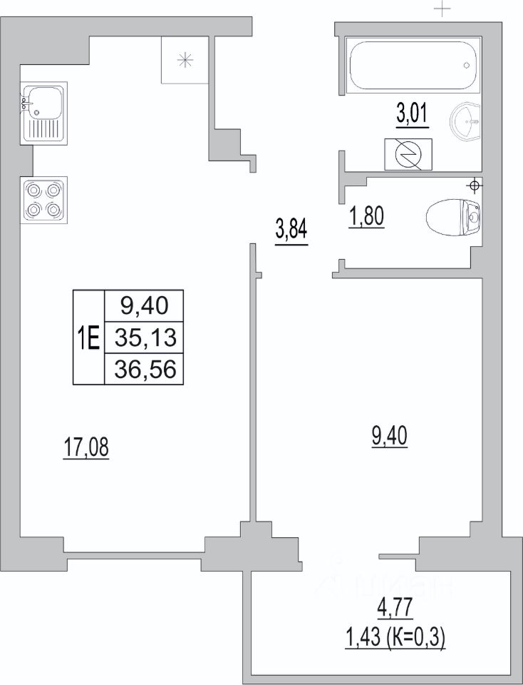 Общая площадь36,56 м2