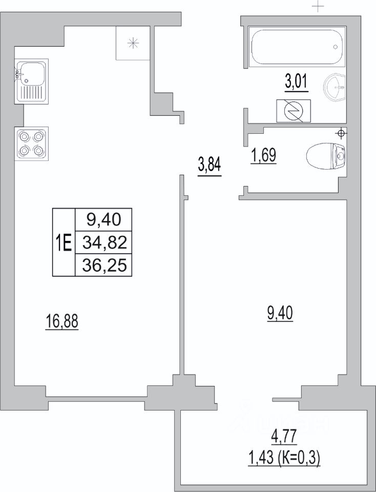 Общая площадь36,25 м2