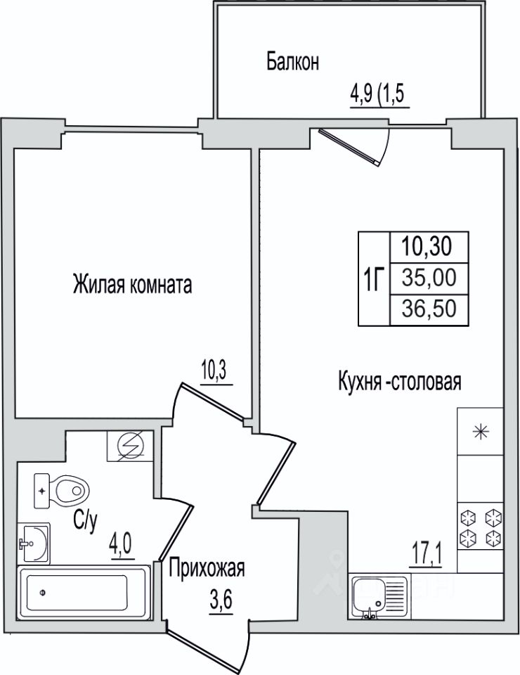 1. Умная планировка - удобная кухня, просторная комната и место для хранения.