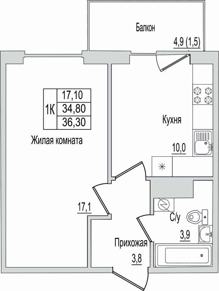 1. Умная планировка - удобная кухня, просторная комната и место для хранения.