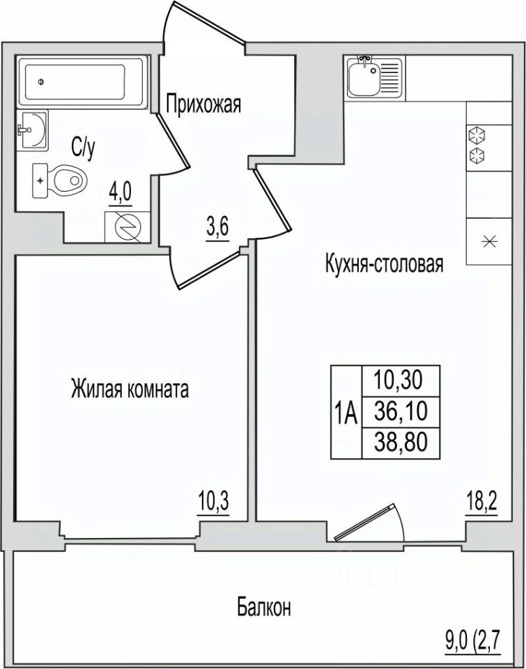 1. Умная планировка - удобная кухня, просторная комната и место для хранения.