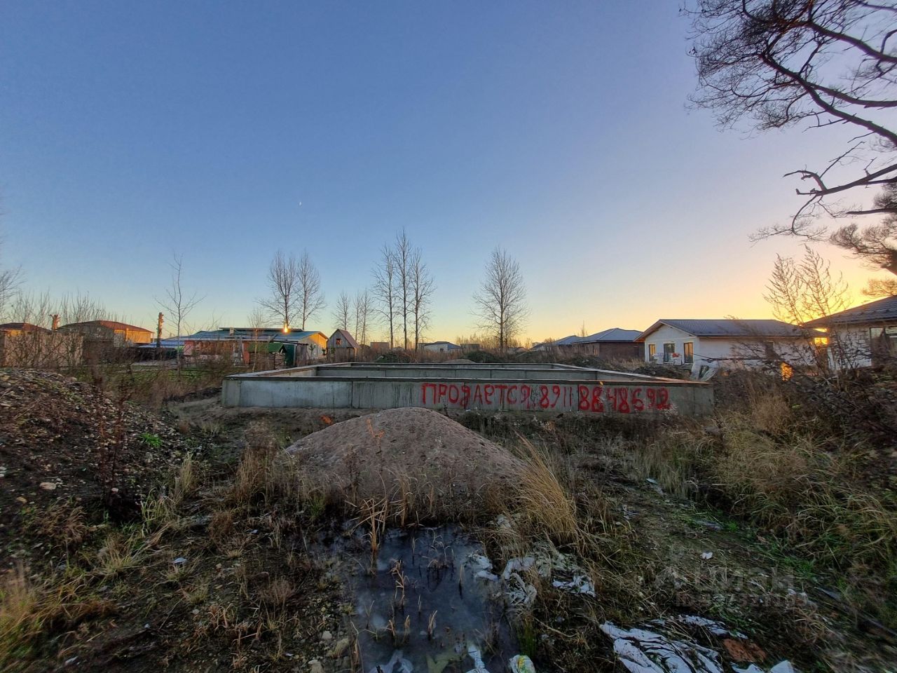 Ключевые преимущества и готовность к стройке: На участке уже есть готовый фундамент под дом площадью 99 м². Фундамент официально зарегистрирован как объект незавершённого строительства (право зарегистрировано в Росреестре). Это экономит ваше время, деньги и силы на начальном, самом сложном этапе. Участок ровный, отсыпан, полностью готов к продолжению строительства.